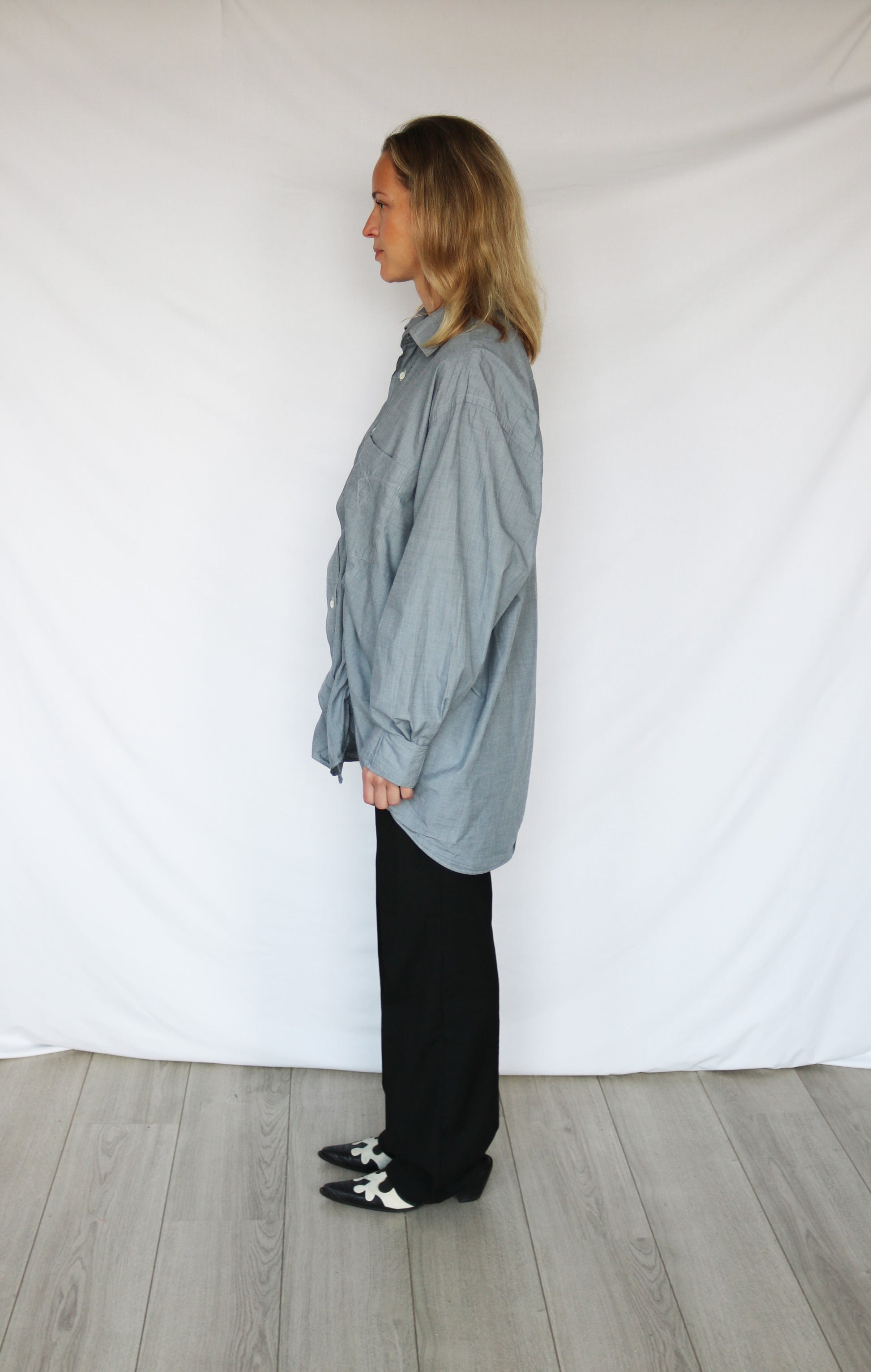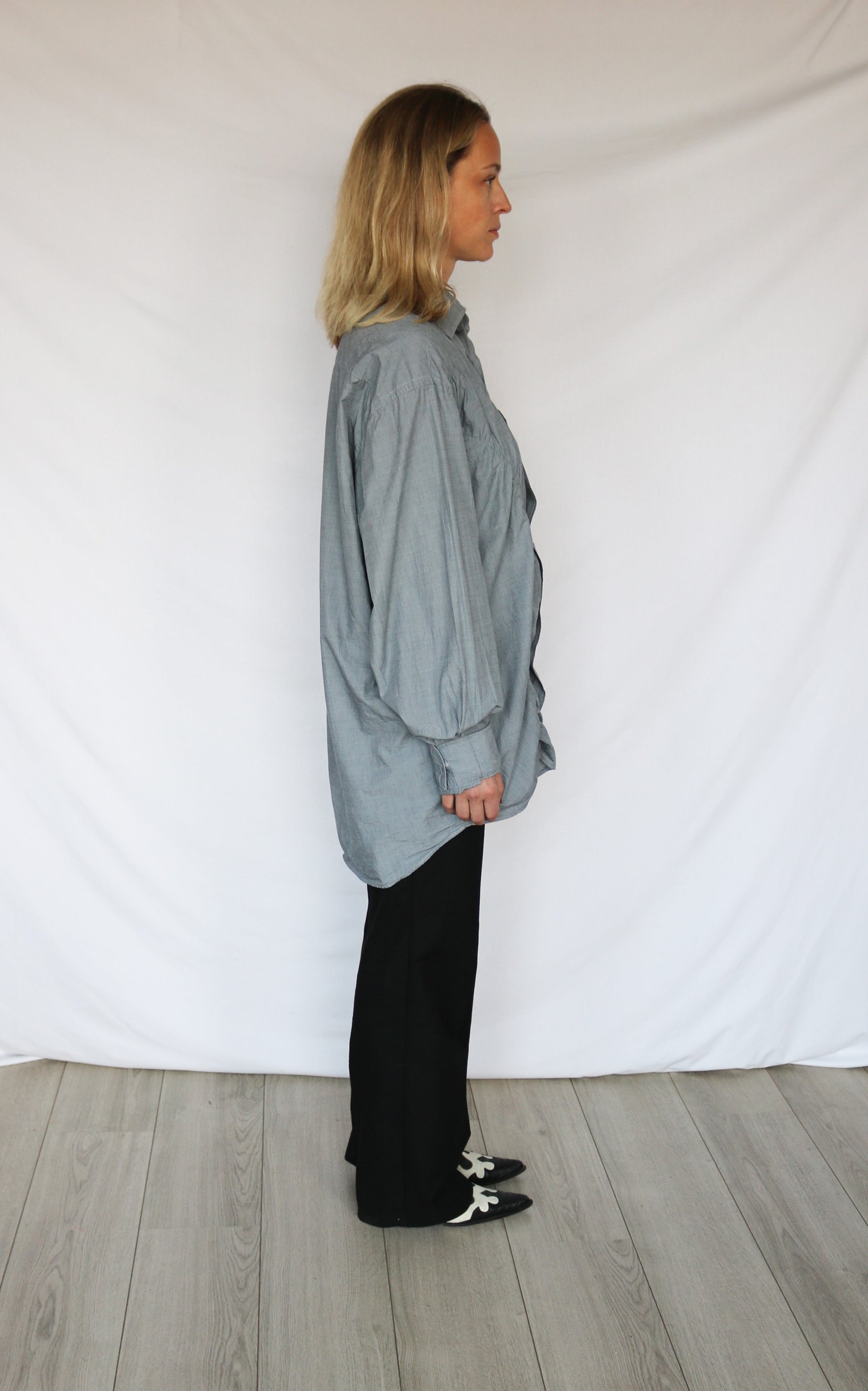 Our bestselling wave shirt. With two lines of asymmetric shirring that cinch in at the perfect points to flatter. Pair with a denim skirt for a casual look or spice it up with a pair of leather trousers (vintage of course!). Can be worn oversized or a bit more fitted.